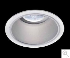 Fehér alumínium felületű, kör alakú süllyesztett mennyezetlámpa, süllyesztett izzóval.